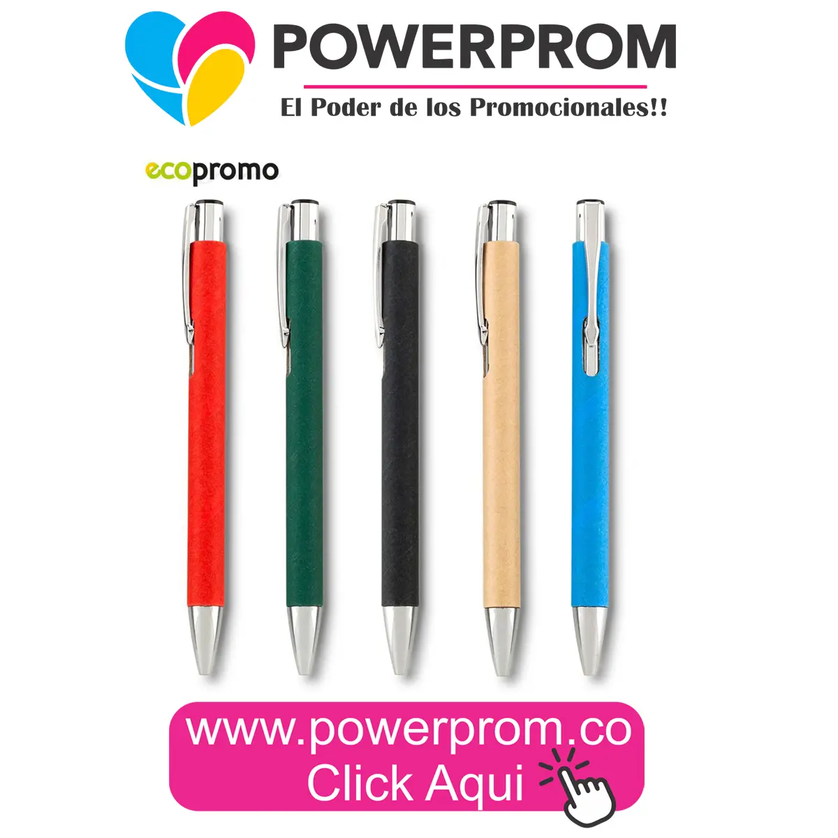 El bolígrafo publicitario en cartón Aston Cartoon se posiciona como una alternativa ecológica dentro del portafolio de artículos promocionales personalizados en Colombia, fortaleciendo la recordación de marca con un mensaje responsable.
