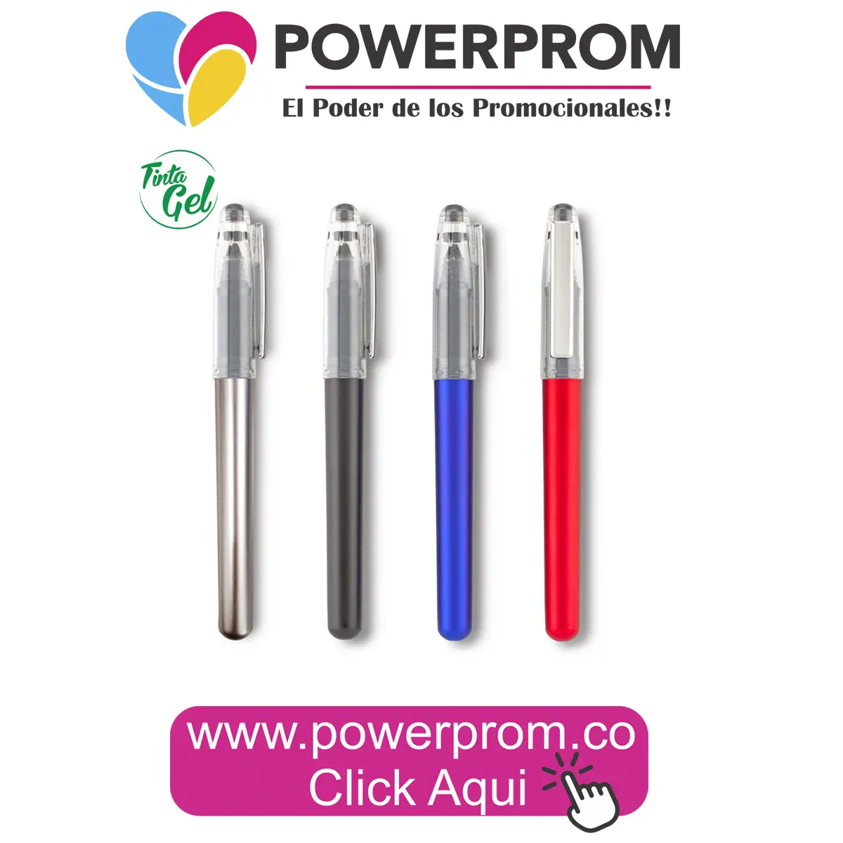 Bolígrafo personalizado tipo gel con micropunta y clip metálico, ideal para campañas corporativas y eventos empresariales.