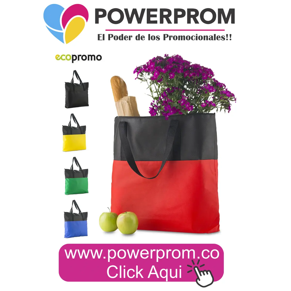 Es perfecta para activaciones comerciales, lanzamientos de producto, programas de fidelización y puntos de venta que buscan una bolsa promocional segura, amplia y con excelente presencia corporativa.