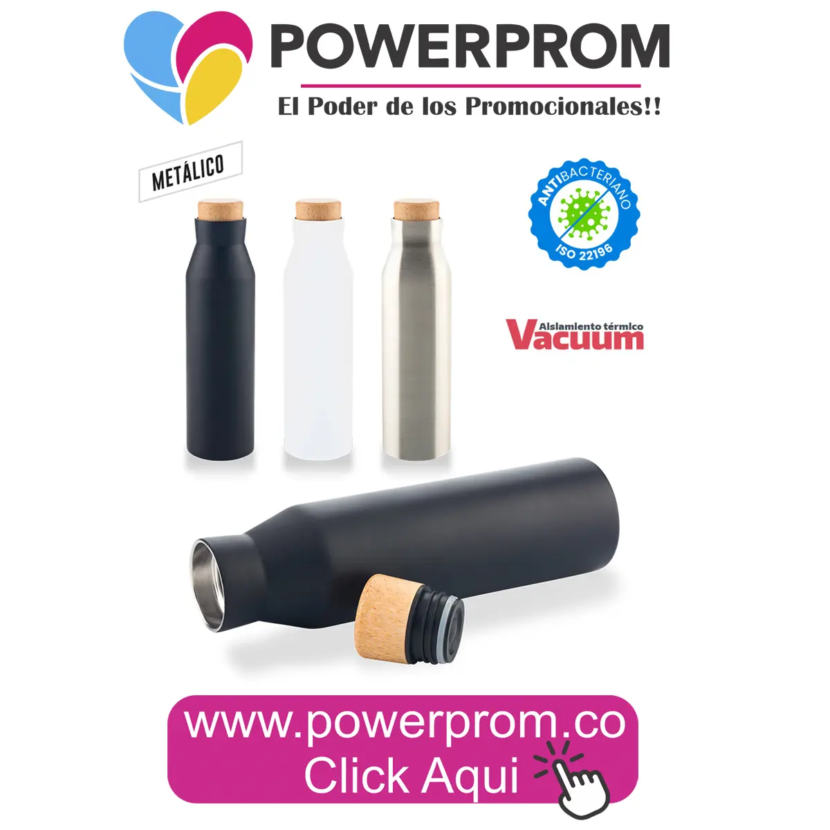 El botilito metálico personalizado Shelby MU-263 está diseñado para marcas que buscan proyectar una imagen premium, moderna y funcional a través de sus regalos corporativos. Fabricado en acero inoxidable de doble pared, incorpora aislamiento térmico que ayuda a conservar la temperatura de las bebidas durante varias horas, ideal para el uso diario.