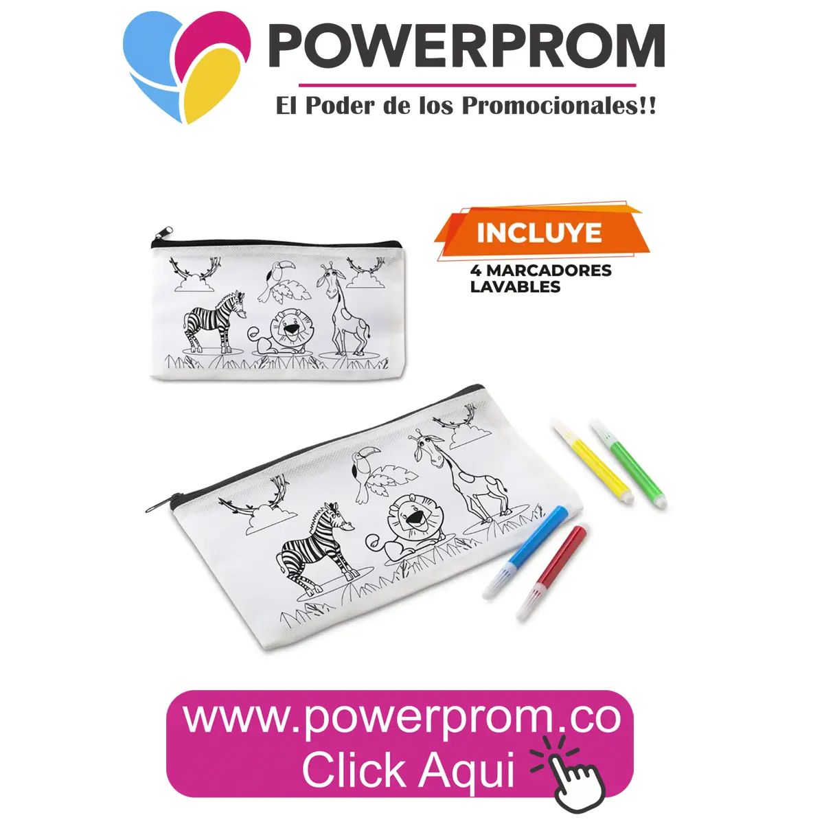 La Cartuchera en Cambrel Kidz con Diseño es el complemento perfecto para campañas escolares, instituciones educativas y marcas enfocadas en niños. Fabricada en cambrel resistente, permite organizar lápices, colores y útiles escolares con seguridad. Sus diseños infantiles y área de personalización la convierten en un producto ideal para imprimir logos de colegios, academias, fundaciones o marcas de consumo masivo. Un regalo promocional práctico y divertido para estudiantes.