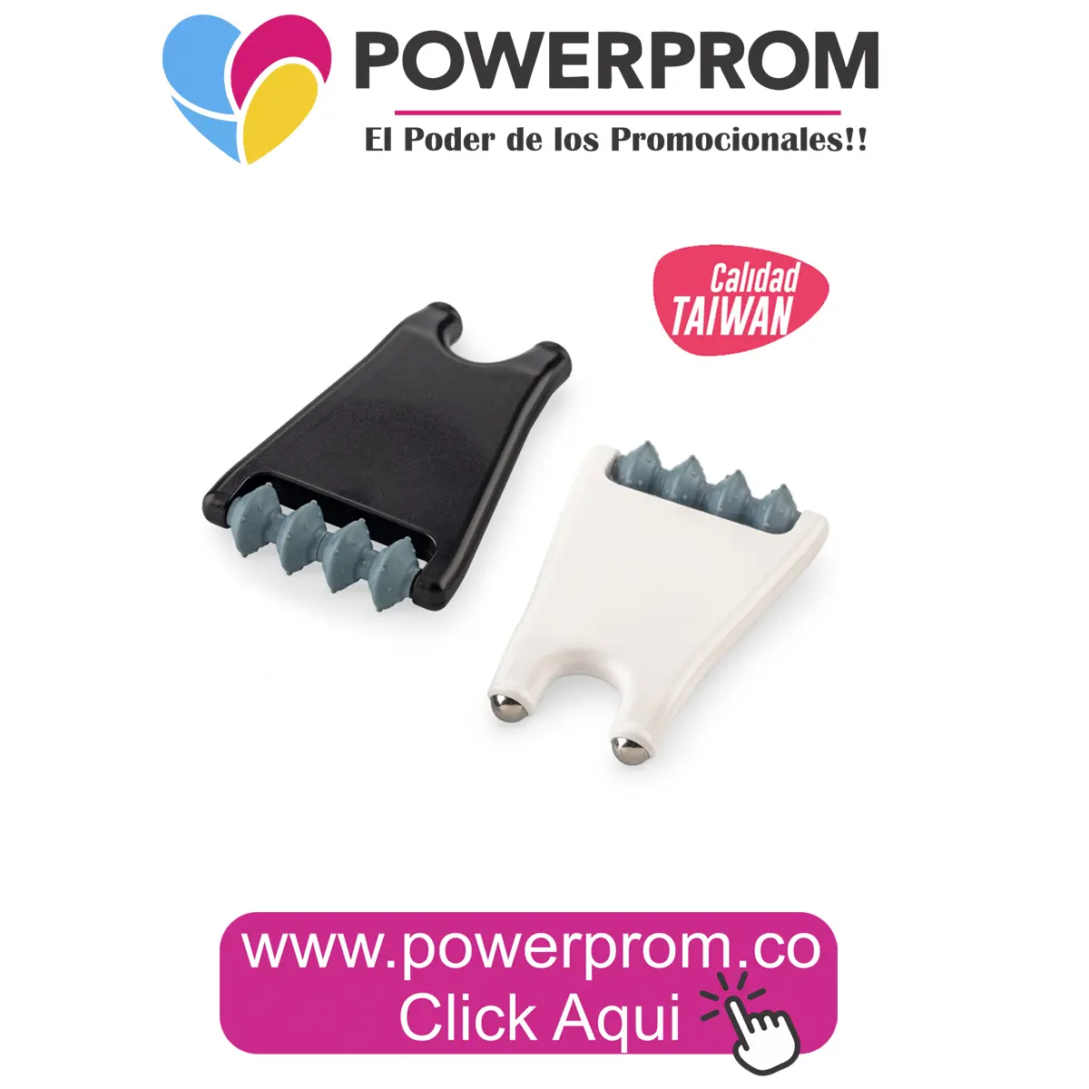 Fabricado en plástico resistente y con diseño patentado de origen taiwanés, este masajeador combina durabilidad con un formato compacto que facilita su uso en oficina, hogar o espacios de descanso empresarial. Es una opción estratégica para empresas que desean ofrecer un regalo corporativo útil y de alta rotación.