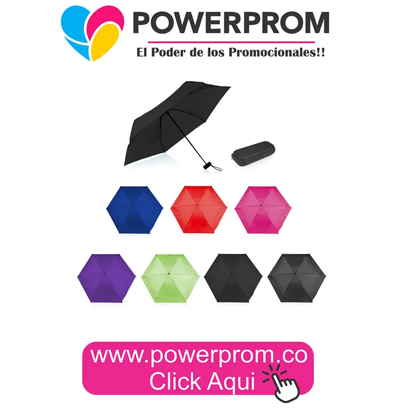 A pesar de su tamaño reducido, cuenta con una estructura resistente de fibra de vidrio y apertura manual. Al personalizar este paraguas con logo tanto en la tela como en el estuche, su marca obtiene doble exposición en un producto de alta percepción de valor.